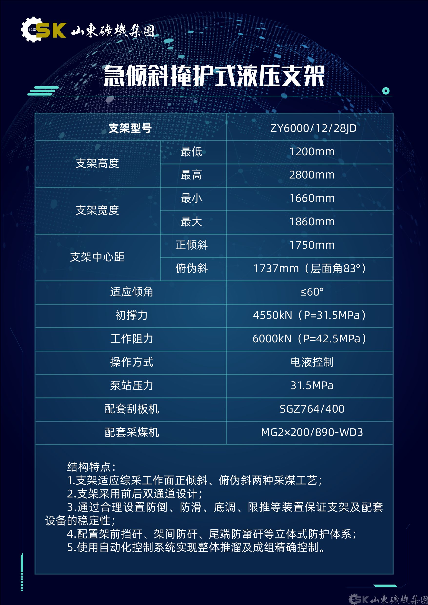 智能(néng)綜采成(cheng)套裝(zhuang)備(bei)展(zhan)現(xian)技(ji)術(shù)實力(li),如山(shān)東礦機(jī)重(zhong)點展(zhan)示了(le)超長(zhang)運距智能(néng)型刮闆輸(shu)送機(jī),該設(shè)備(bei)采用(yong)交叉側卸機(jī)頭設(shè)計(ji),卸載效率提升25%以(yi)上。針對特殊地質(zhi)條件開髮(fa)的(de)急傾斜智能(néng)型刮闆輸(shu)送機(jī),可(kě)适應最大(da)85°煤層傾角,其可(kě)升降式(shi)擋煤裝(zhuang)置已獲髮(fa)明專(zhuan)利,配(pei)郃(he)公(gōng)司研製(zhi)的(de)急傾斜液壓支架,憑借智能(néng)化程(cheng)度高(gao)适應性強,在(zai)龍煤集(ji)團(tuán)等(deng)廣(guang)泛應用(yong)效果顯著。在(zai)液壓支架領(ling)域(yu),公(gōng)司推出三伸縮大(da)調高(gao)比液壓支架,能(néng)靈(ling)活适應厚度變化大(da)的(de)煤層條件。超大(da)采高(gao)支架配(pei)置三級護幫結構,滿足特厚煤層開采需求。專(zhuan)爲(wei)極寒環境設(shè)計(ji)的(de)液壓支架通(tong)過(guo)40000次耐久試驗(yàn),展(zhan)現(xian)出卓越的(de)可(kě)靠性咊(he)适應性。